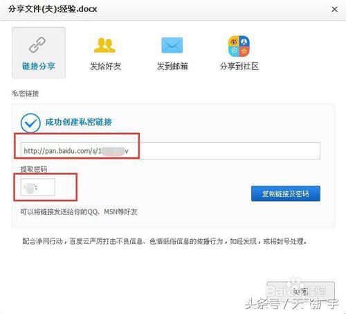 这样,就完成了此百度云盘文件的加密步骤。可以直接复制链接与密码给需要的人,没有密码的人都不能下载了。