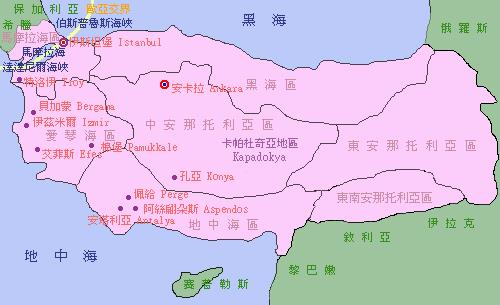 土耳其大部领土位于亚洲西部,少部领土位于欧洲东部