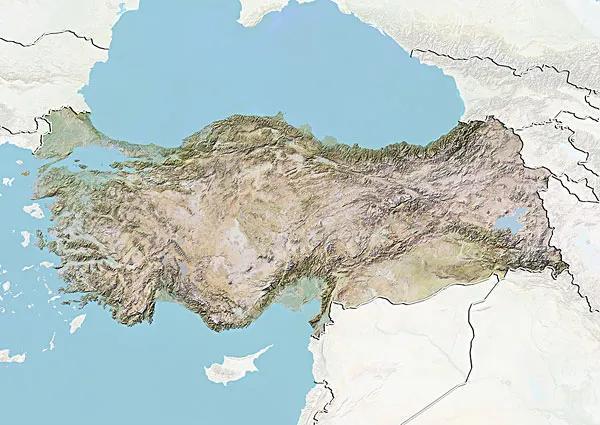 土耳其地跨亚、欧两洲,邻格鲁吉亚、亚美尼亚、阿塞拜疆、伊朗、伊拉克、叙利亚、希腊和保加利亚,濒地中海、爱琴海、马尔马拉海和黑海。海岸线长7200公里,陆地边境线长2648公里。南部沿海地区属亚热带地中海式气候,内陆为大陆型气候。土耳其地理位置和地缘政治战略意义极为重要,是连接欧亚的十字路口。