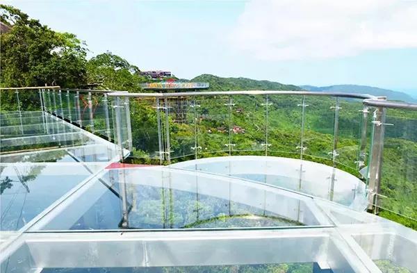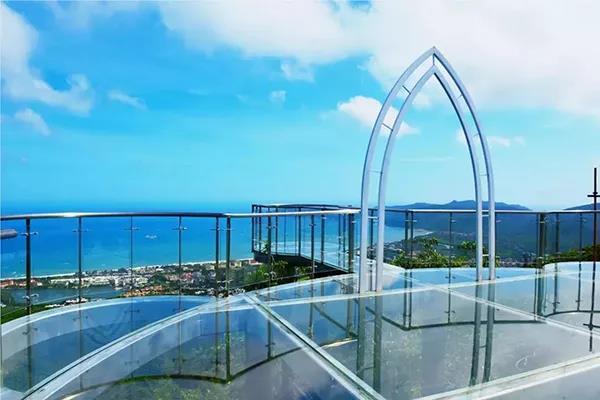 大佛石全海景玻璃栈道位于亚龙湾热带天堂森林公园之巅,最高处海拔450米,为全国首座全海景玻璃栈道