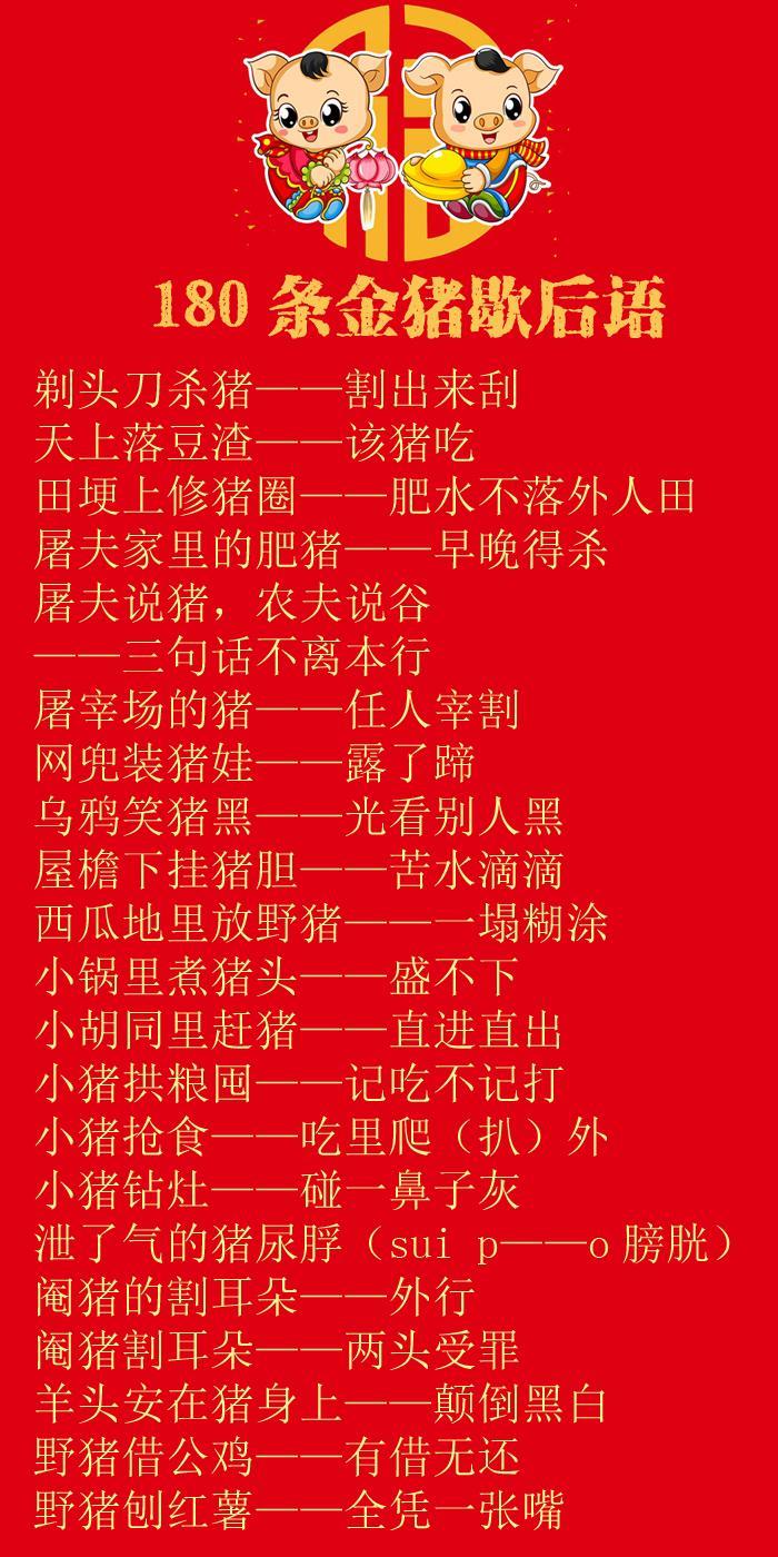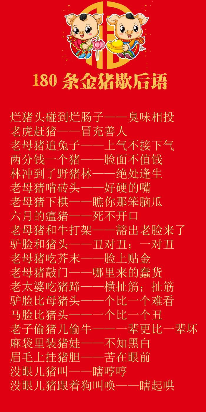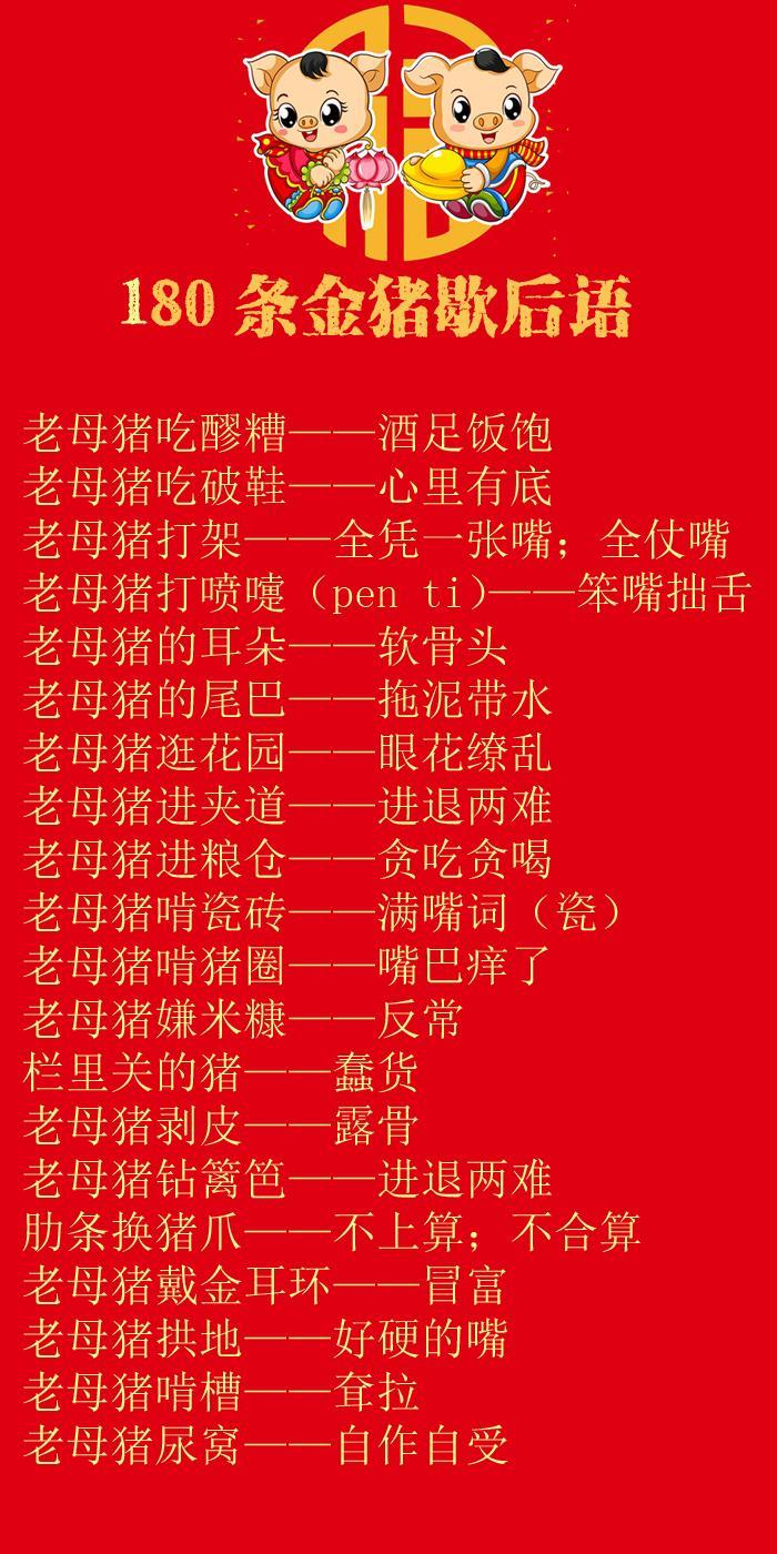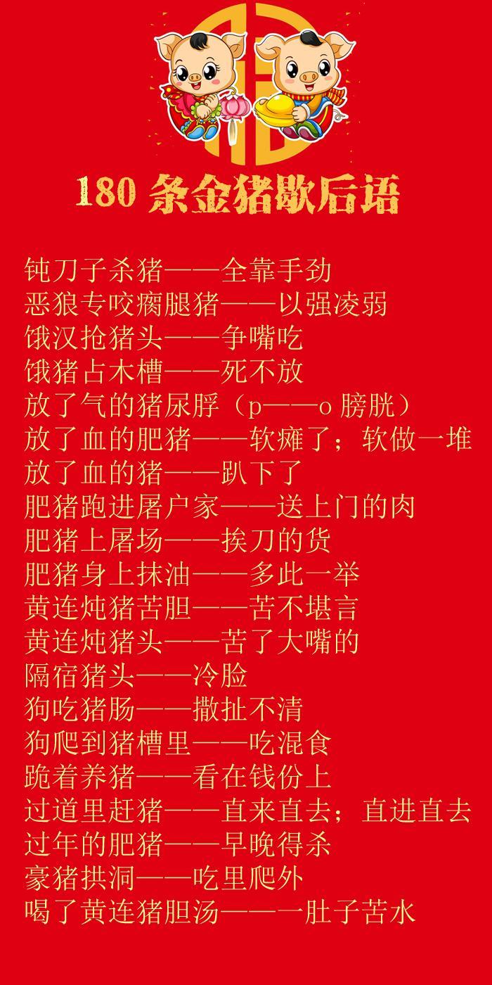 在中国传统民间语言当中,也有大量与猪有关的俗语歇后语。这些语言生动有趣,把深刻的道理寓于简洁活泼的俚语当中,实为中国传统语言的独特财富。今天,小编给大家整理了80多条与猪有关的歇后语,供大家欣赏。记住:猪年,要说“猪”话,才有“猪”福哦!