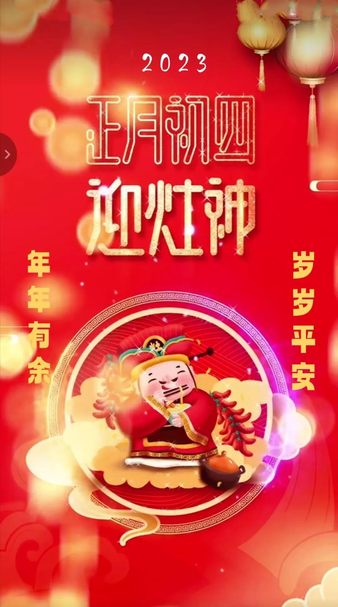 2023年元月25日,农历正月初四,星期三,恭迎灶神到,保佑岁岁平安,万事顺遂,福气满满!