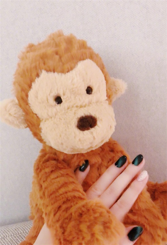 在社交媒体上发了一张猴子玩偶照片,配文:大家猴呀