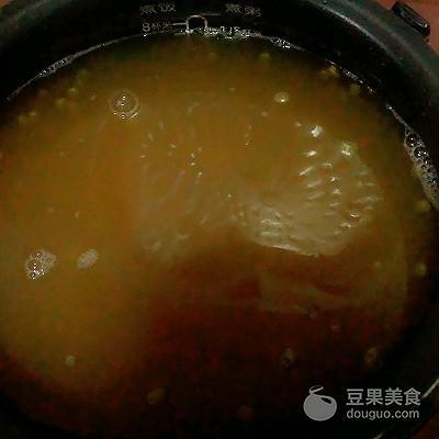 要绿豆开花才算煮好,如果用普通锅煮,中途加一两次凉水,用凉水激一下开着锅的绿豆,热的东西猛的一遇冷,热胀冷缩的原理,绿豆就会开花,这样可以节省炖煮的时间。