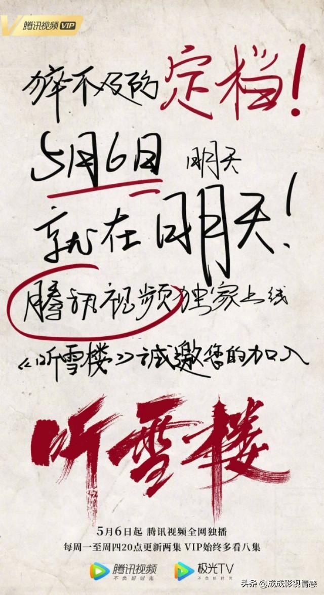 根据沧月同名超级新武侠IP改编的古装剧《听雪楼》官宣定档,5月6日起腾讯全网独播!