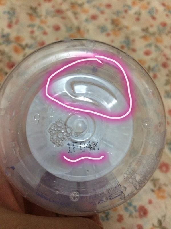 最直观的就是只有日版才有naturie的字样,其他版本都没有。而且瓶身上所有的字体都是凸出来的。图上圈出来的三个点,是大家可以做对比的地方。