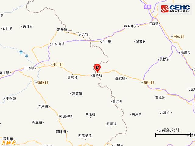 震中距海原县37公里、距甘肃白银平川区38公里、距甘肃靖远县51公里、距同心县68公里、距西吉县88公里,距中卫市95公里,距银川市222公里,距兰州市143公里。