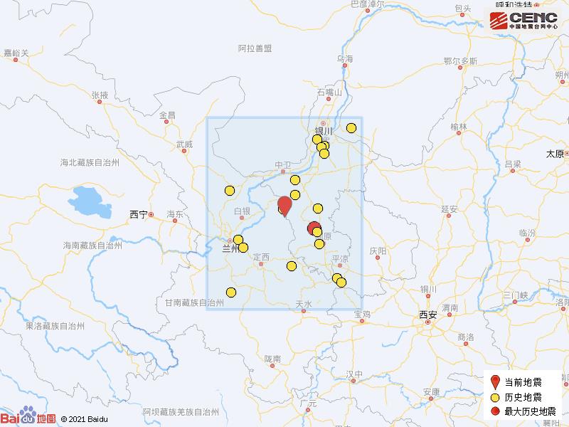 根据中国地震台网速报目录,震中周边200公里内近5年来发生3级以上地震共20次,最大地震是2017年9月2日在宁夏固原市原州区发生的4.6级地震(距离本次震中80公里),历史地震分布如图。