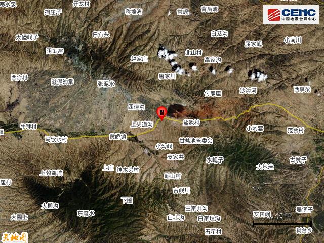 本次地震周边5公里内的村庄有高岘、王家埫、小沟岘、唐家、狼寨柯、盐池乡、唐家坡、石沟岘、杨家山,20公里内的乡镇有盐池乡。