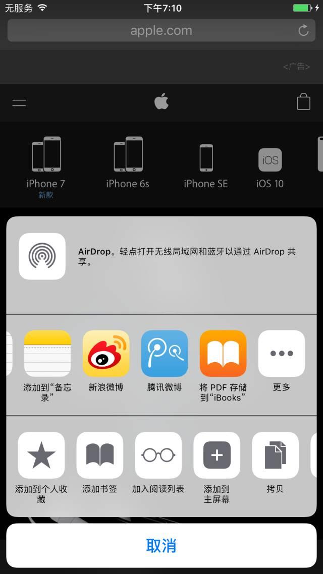 当你使用Safari浏览网页的时候,你可以通过 分享键 把该页面所有内容以PDF格式储存到 iBooks 里,方便下次离线阅读。