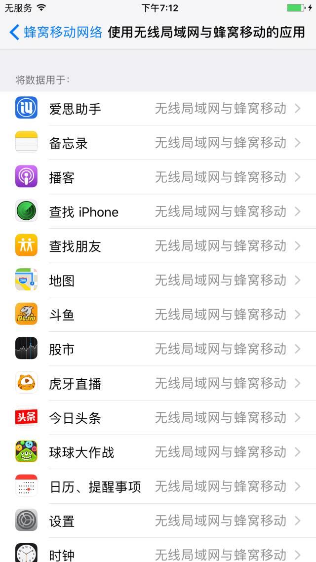 iPhone升级到iOS10后,如果打开某个应用显示无网络连接时,可以查看一下设置里的蜂窝移动网络,在里面打开 使用无线局域网与蜂窝移动的应用 ,查看那个无网络连接的app是否允许使用无线局域网与蜂窝移动网络。