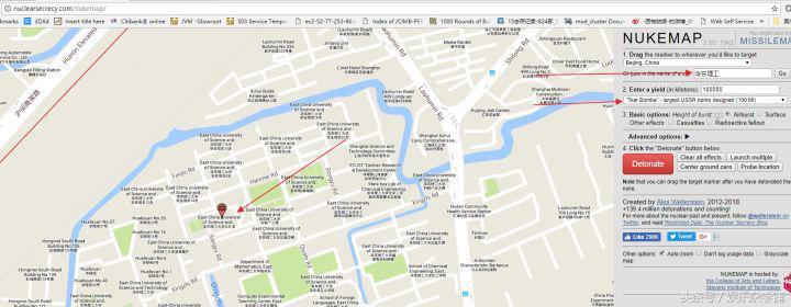 我(冷漠,指屏幕):这,华东理工大学。这,tsar bomba,大沙皇,人类历史上最大的核弹。空爆。《核弹模拟器》