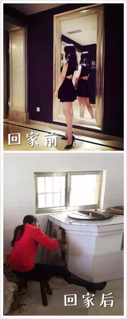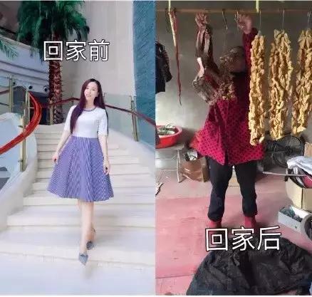 爆笑!春节回家前后对比照,女神秒变村口二丫子!