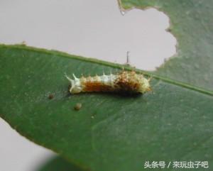 共分成五龄,前四龄拟态呈鸟粪状,五龄呈绿色,并有臭角防卫。