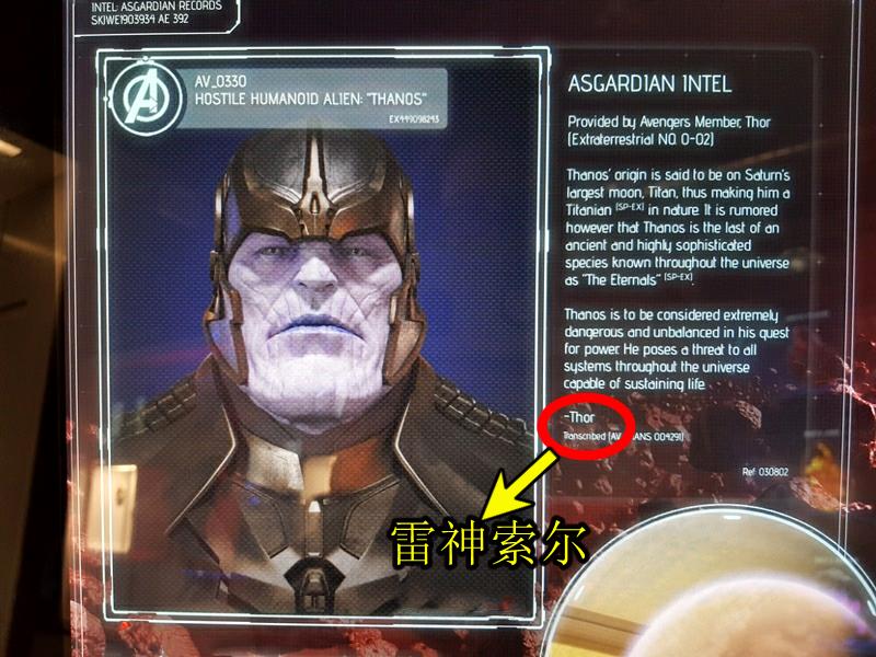 上面这个是漫威所展示角色信息的一部分,为我们明确地说明了灭霸的来历,内容翻译过来为“萨诺斯出于土星最大的卫星泰坦,有传言说,萨诺斯是这个古老而高度复杂的物种中的一个,在整个宇宙中被称为“永恒”。值得注意的是,这段话的结尾署名竟然是“索尔”。