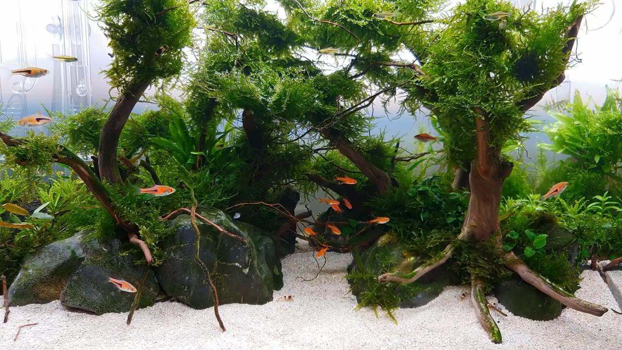 开始给鱼缸栽种水草,有莫斯,小水榕,柳叶铁,绿温蒂椒,南美叉柱花,喷泉太阳水草,您也可以根据自己需求进行更换。