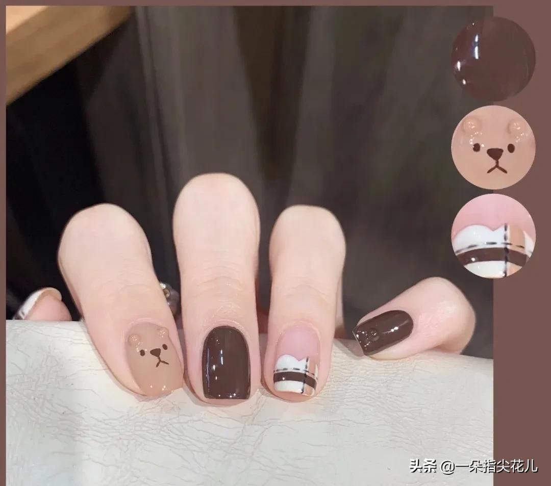 第十款:可爱小熊和格子彩绘,棕色系组合秋冬更搭毛衣哦。