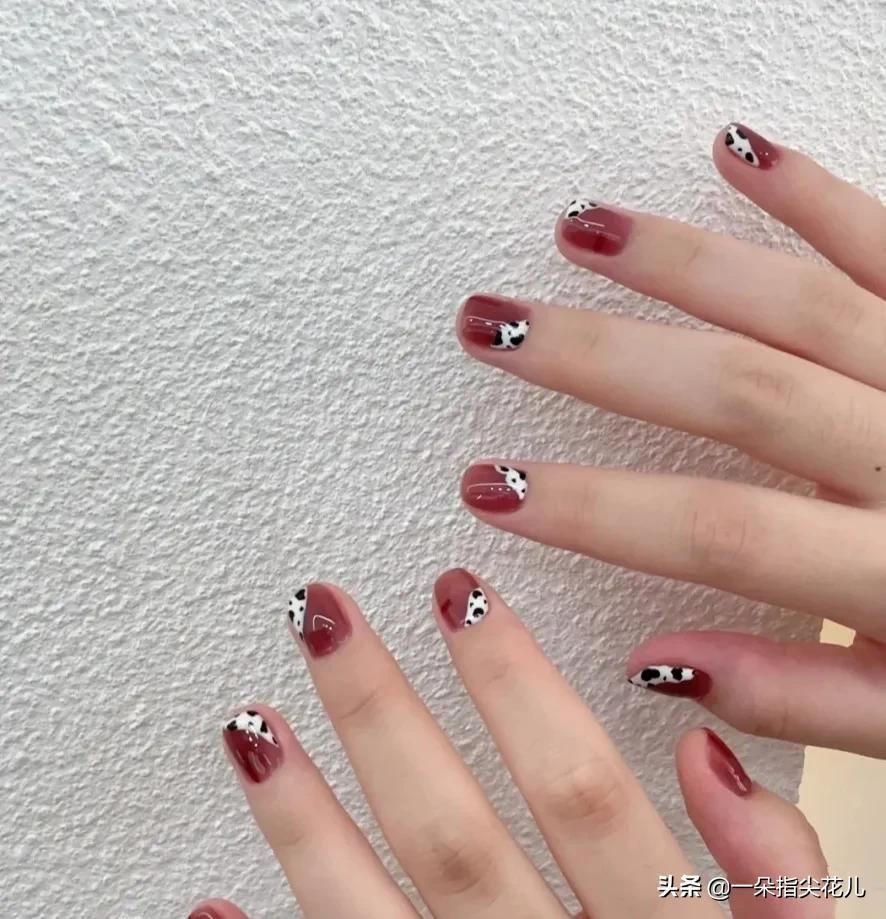 第三款:红豆沙色加黑白奶牛纹,注意配比,小短甲做这款,也很好看。