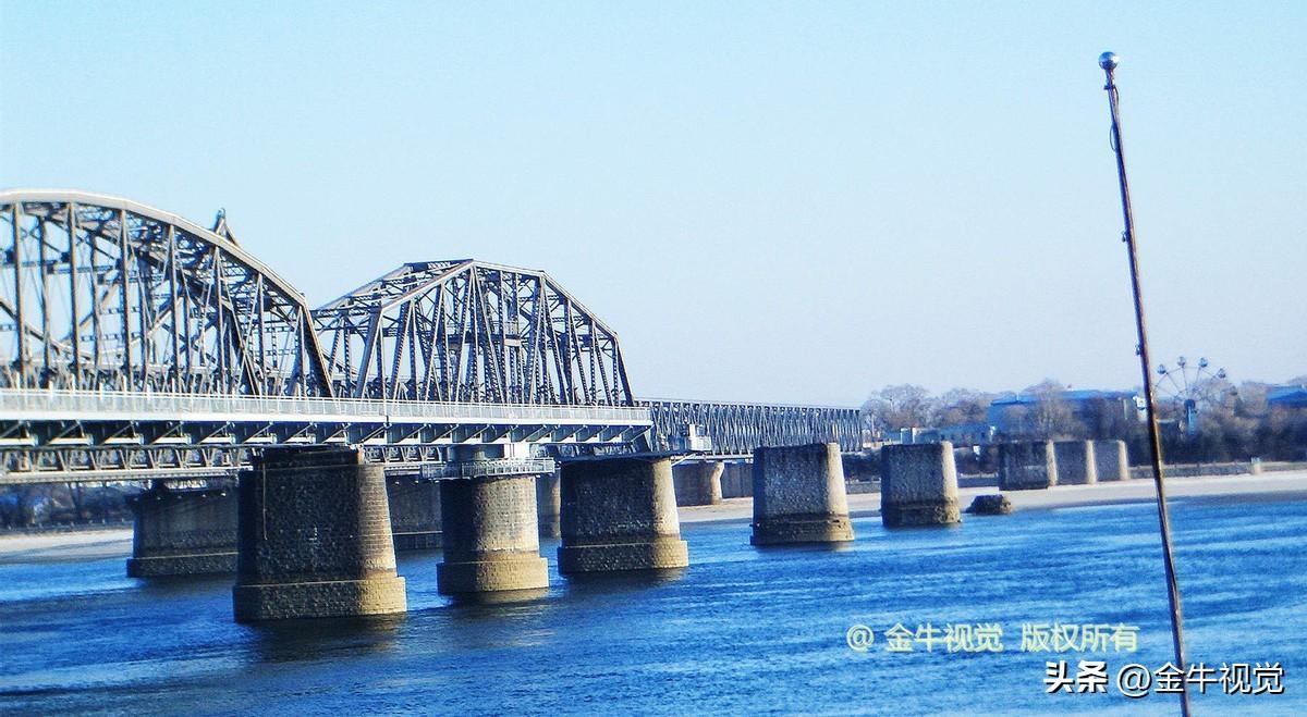 这就是当年志愿军跨过鸭绿江的大桥,站在岸边,仿佛我们能够感受到地面志愿军在快速英勇前进,天上美国飞机拼命轰炸的场景。