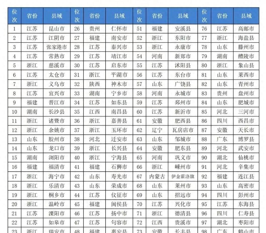 无论是城市发展还是乡村振兴,江苏在百强县数量上明显领先。