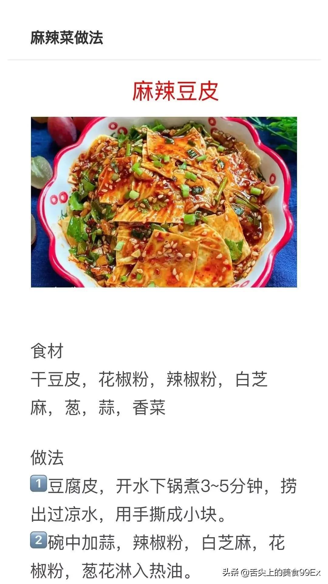 下面是麻辣豆皮,麻辣拌,麻辣鸡丁,麻辣毛血旺,麻辣土豆片,麻辣牙签肉,麻辣麻椒鸡,麻辣红油无骨鸡爪,麻辣烤鱼,麻婆豆腐,麻辣巴沙鱼,减肥麻辣烫,麻辣鱿鱼的做法教程及配料!!!!!!!!!!!!!!!!!!!