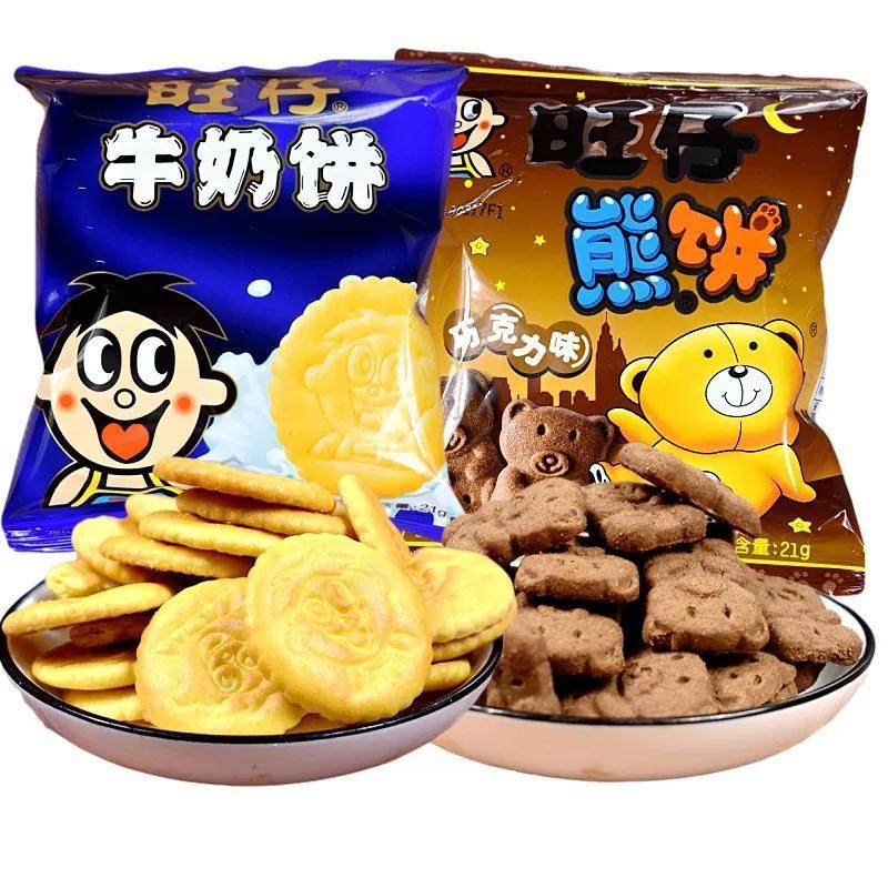9、糕饼类:旺仔熊饼、旺仔牛奶饼、旺仔饼干系列以及旺仔YA-MI麦脆片。其中的旺仔饼干系列包含了综合口味、旺仔俏力威等多个口味。