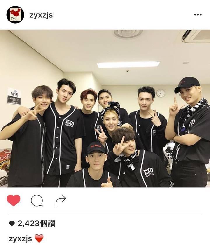 EXO张艺兴INS更新组合九人完美照 朴灿烈边伯贤同有爱手势