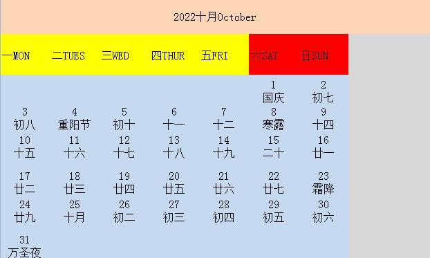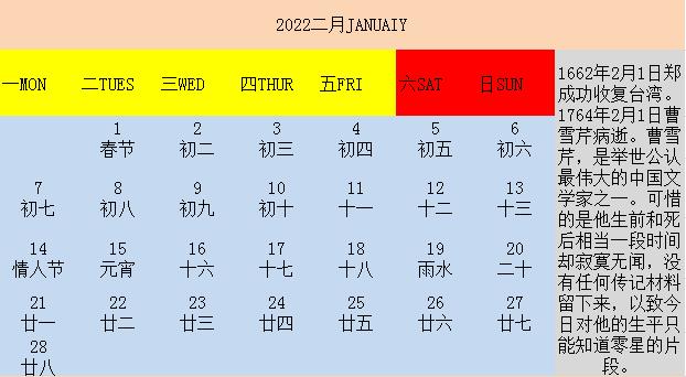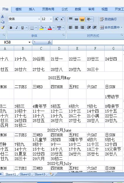 第二:在网上找到相对应的年份日历,按内容输入表格内。