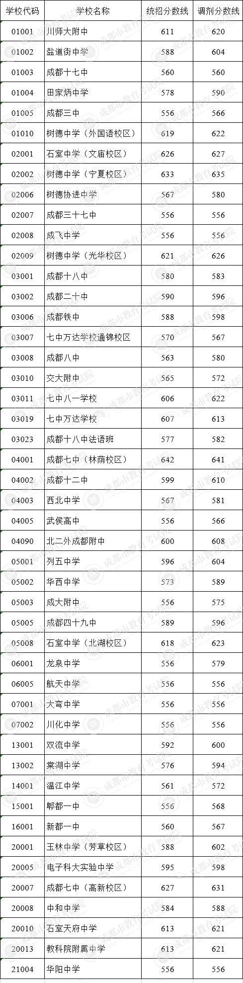 成都各高中中考录取分数线出炉!七中642,四中626,九中633