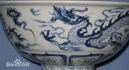 明代龙纹:凶猛威武,胸前大多饰有曲折的绶带,身披火焰纹,怒发冲冠,咆哮于海涛祥云之间,以示主宰权势。具体特征:头部略圆,比前朝显细,鬓发成篷,毛有向上冲或向斜上冲或向斜上冲之势。下颚较长,特别是上颚端肌肉发达,高高突起,呈如意状,形如猪嘴,所以人称“猪嘴龙”;睫毛比较写实,眼睑的上边缘一般用数根短竖线表示睫毛;双须粗,伸展有力,形如鱼叉,部分龙纹的双须在局部处呈螺旋形曲折,但须尖成前冲,直而不弯;爪子第一第二趾相对成蟹钳状,趾间距离比较相近,形若风车;身体呈网格纹、锯齿纹较多。