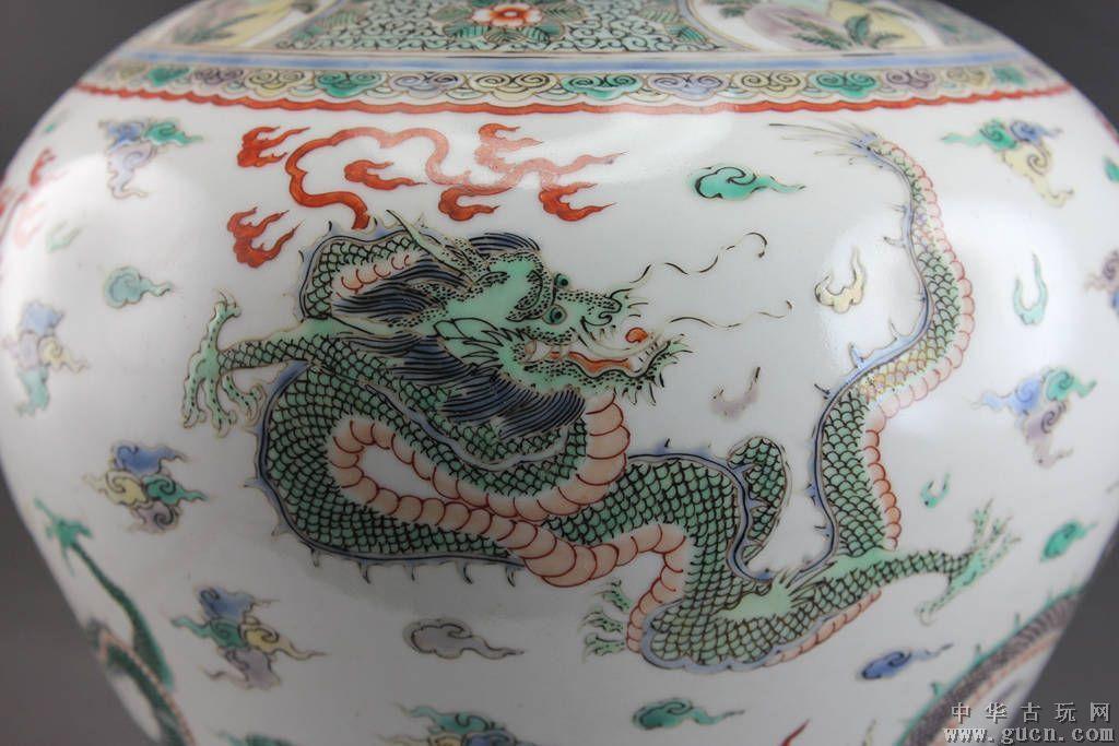 清代龙纹:气宇轩昂,龙首后勺丰满、身躯健硕,盖以庞然大物之态,行震撼天动地之威。具体特点:龙首变化很大,猪嘴收缩,显出下颚比上颚长。长披发或多簇短耸发;睫毛形态多样化,不少以竹叶形描绘,顺治年间睫毛现象习见,康雍时期睫毛时有时无,乾隆朝起,睫毛现象十分普遍;须清;第一第二趾舒展成一直线,爪子犹如踏在平地,有龙身腾舞、爪子却着地受力的韵味;龙身鳞片多半带有染色。