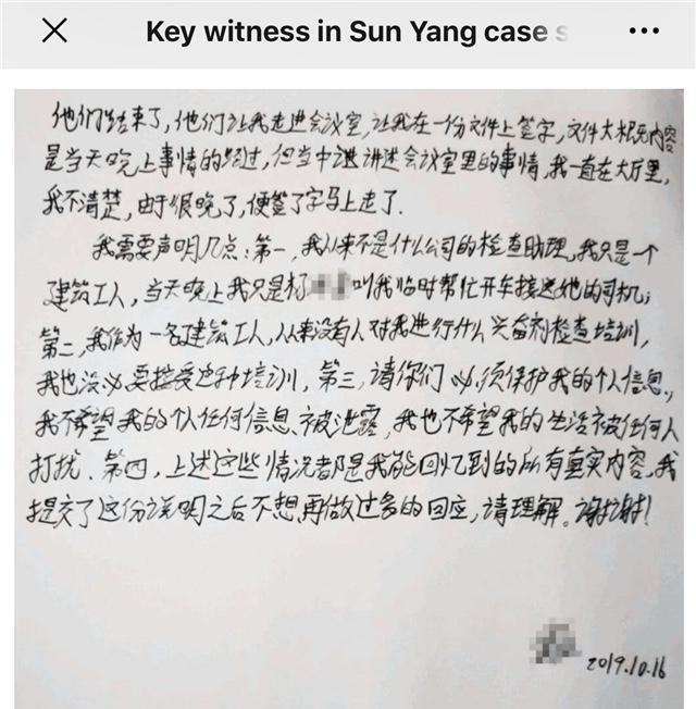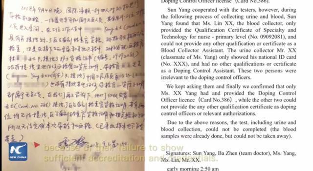 听证会后,孙杨多次公布视频,证明检查人员没有资质文件,不具备采样资格,值得一提的是,孙杨还和检查人员签署了一份协议,承认检测是“不完整的”,同意不带走游泳运动员(孙杨)的样本,因为他们没有足够的认证和资质证明!