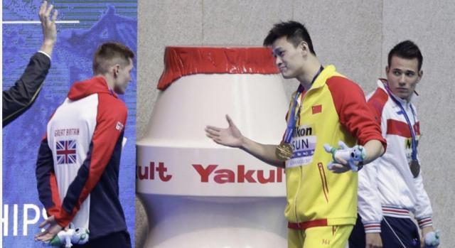 2019年7月21日,光州游泳世锦赛,获得400自亚军的澳大利亚选手霍顿拒绝和孙杨同台领奖,随后英国选手斯科特也拒绝和孙杨合影,斯科特的举动也招致孙杨的不满,为了表达抗议,孙杨向其愤怒地挥了挥拳头,并回击道:“你输了,我赢了。”