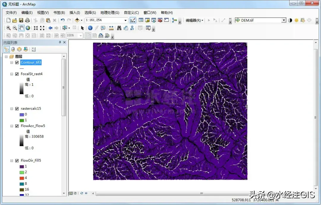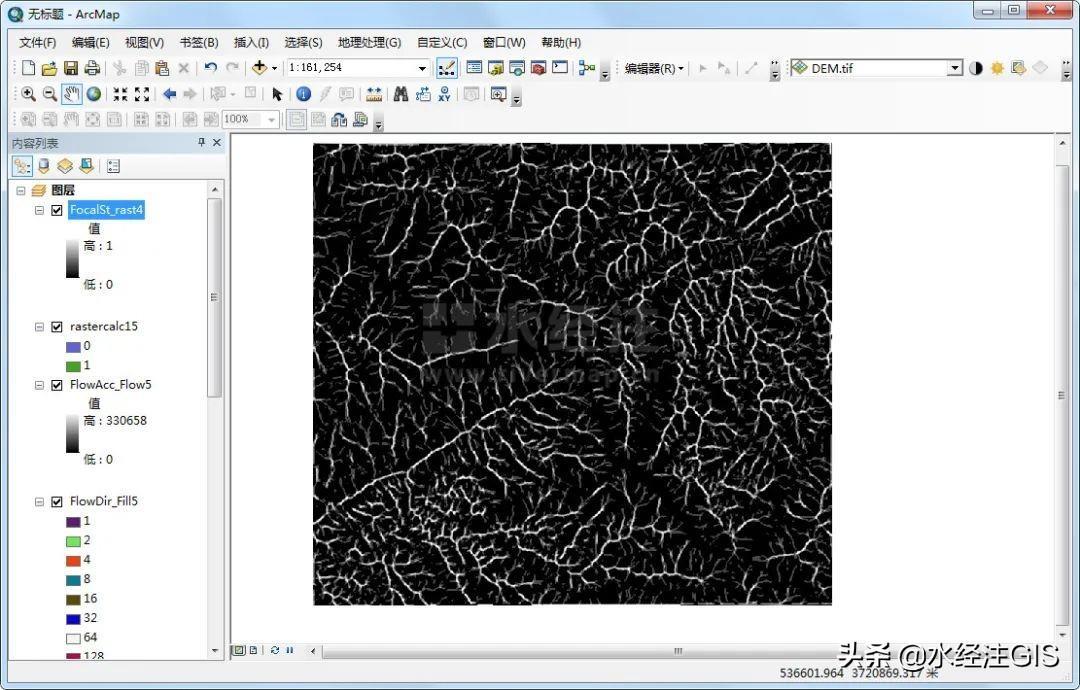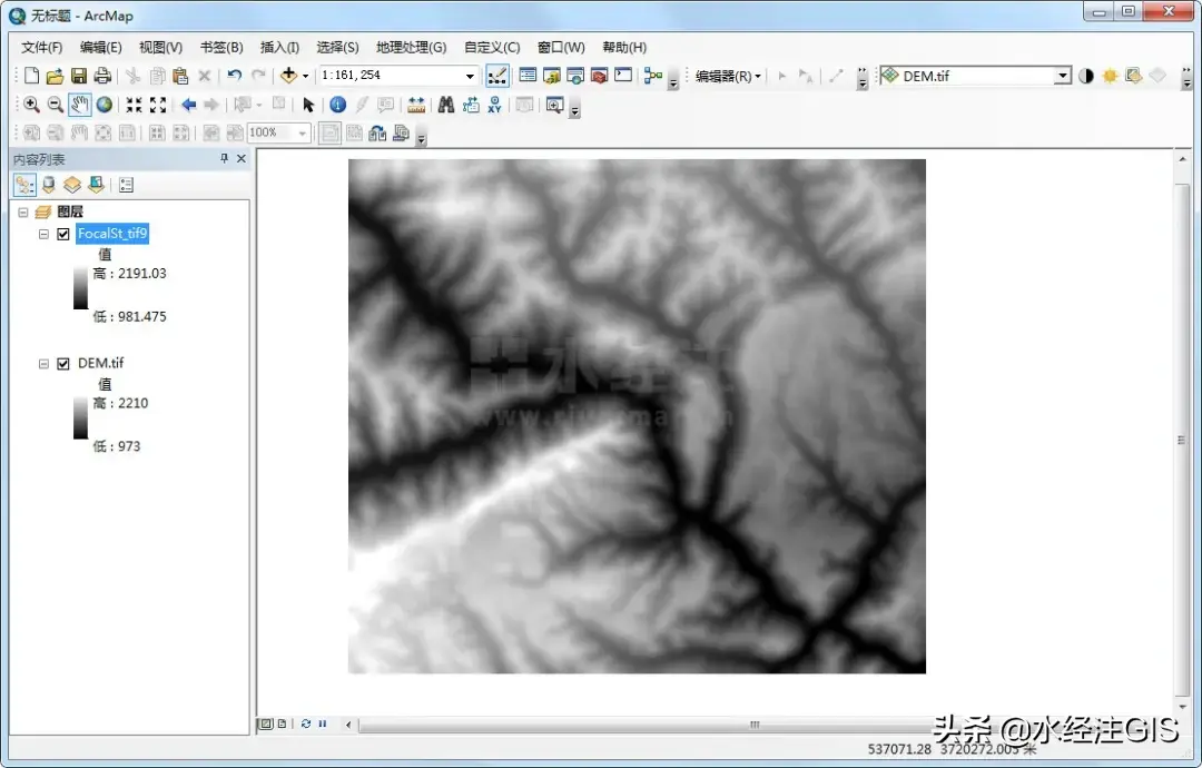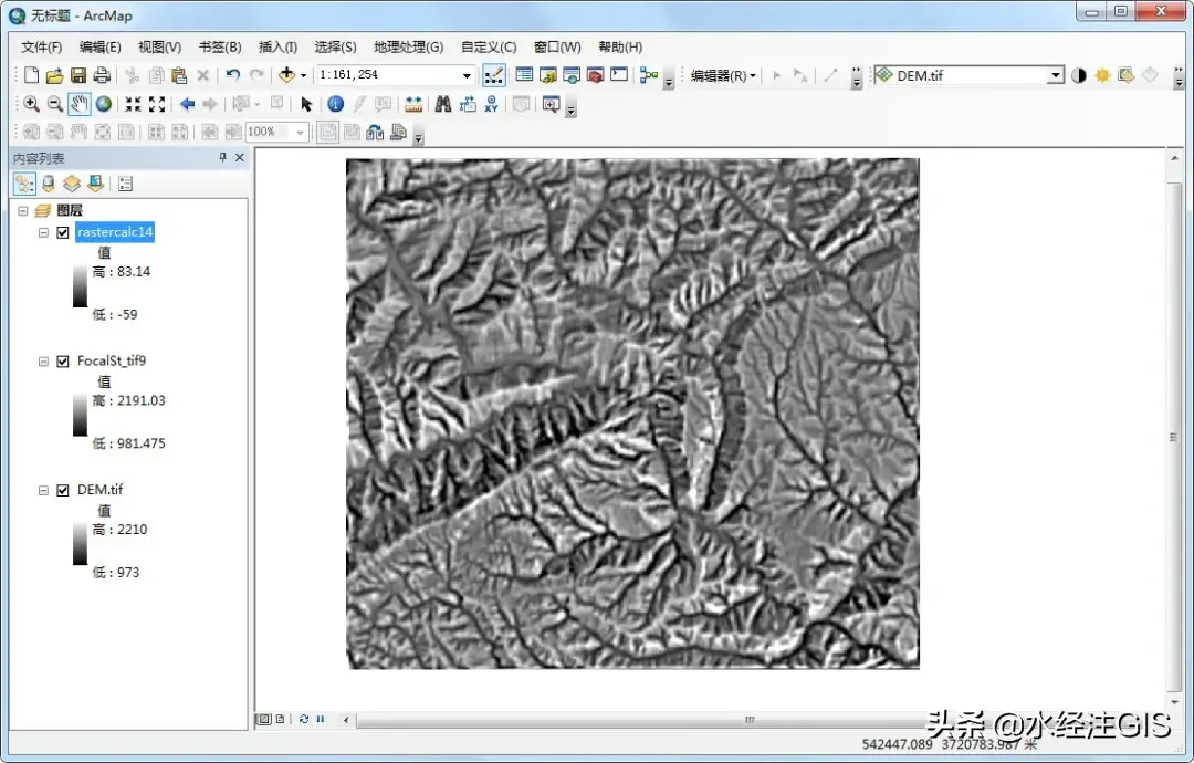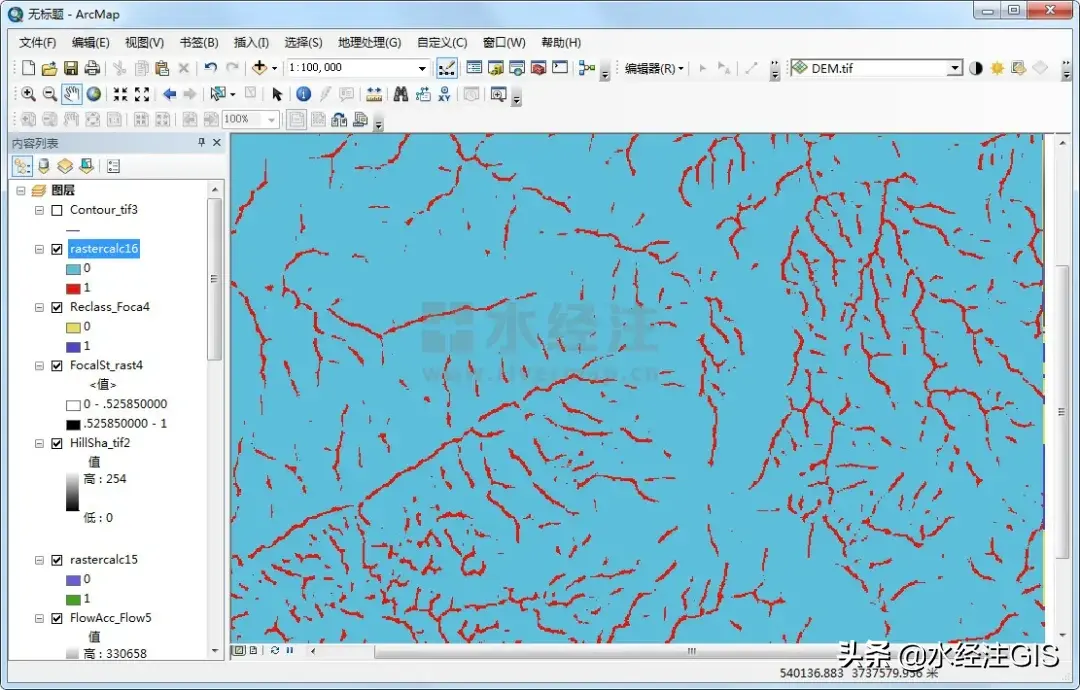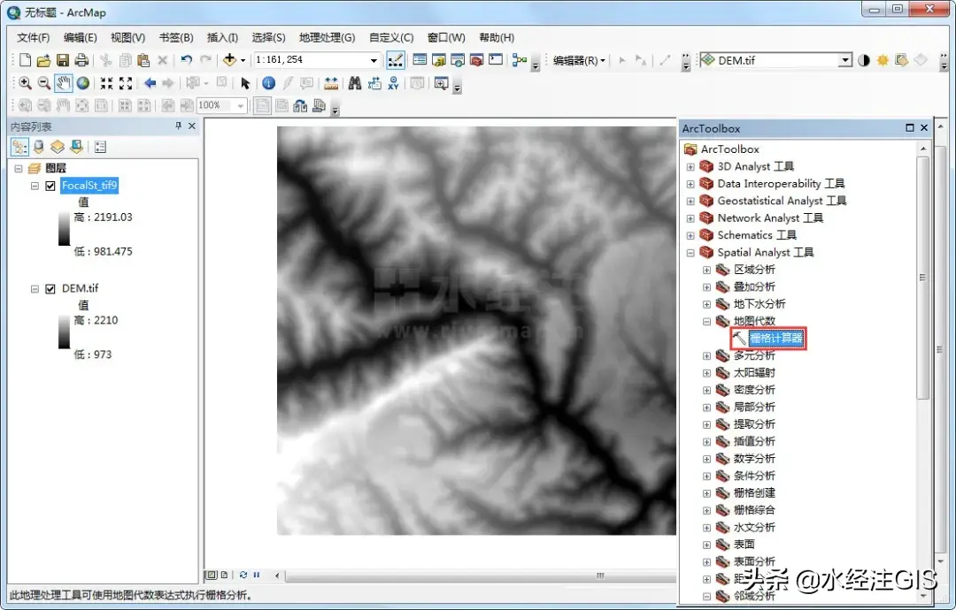 为了消除那些存在于负地形区域中的错误的山脊线,最后需要正地形和得到的结果进行乘法运算,所以需要先准备正地形栅格数据。