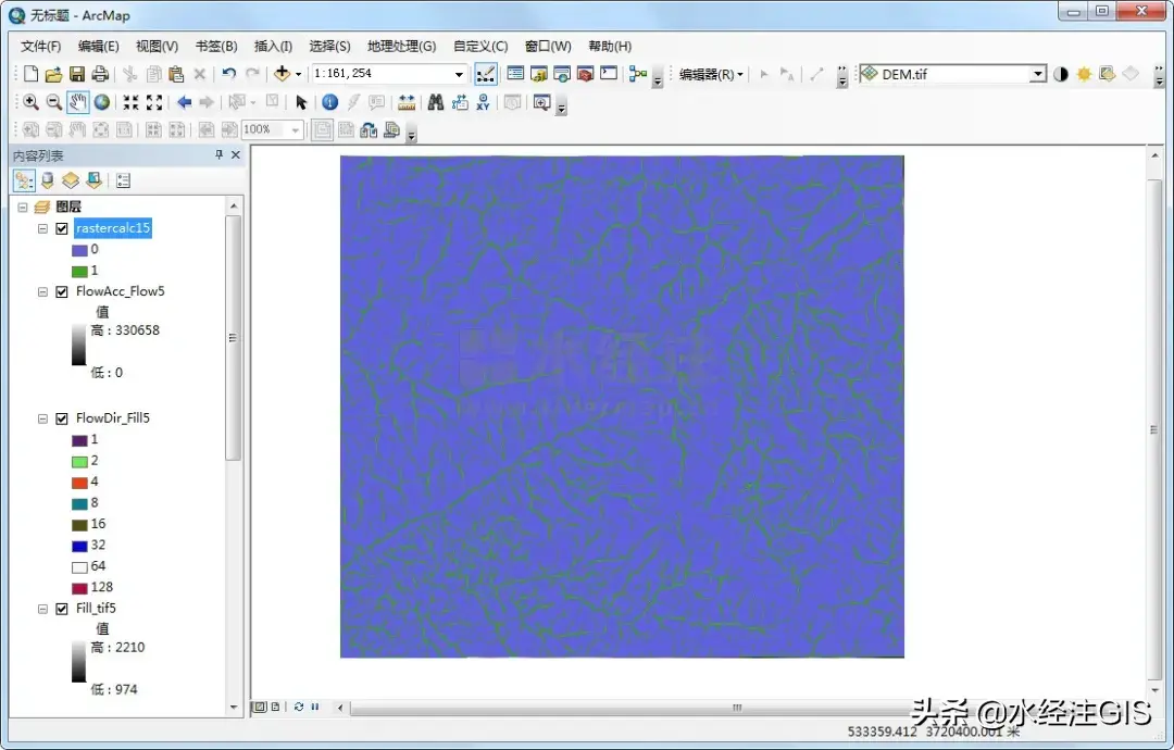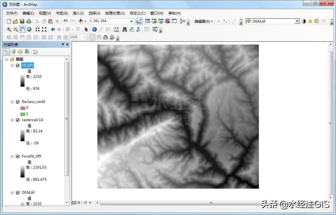 点击确定后可以得到填洼后的栅格,如下图所示。