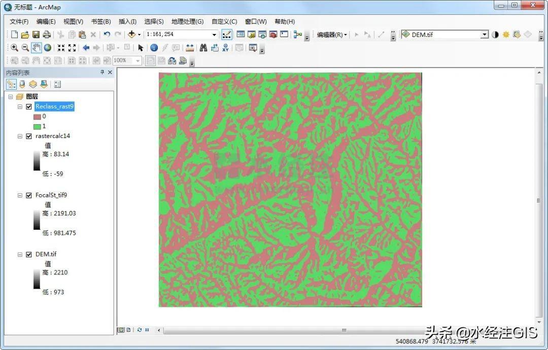 为了排除负地形的影响,需要将重分类结果和正地形相乘。