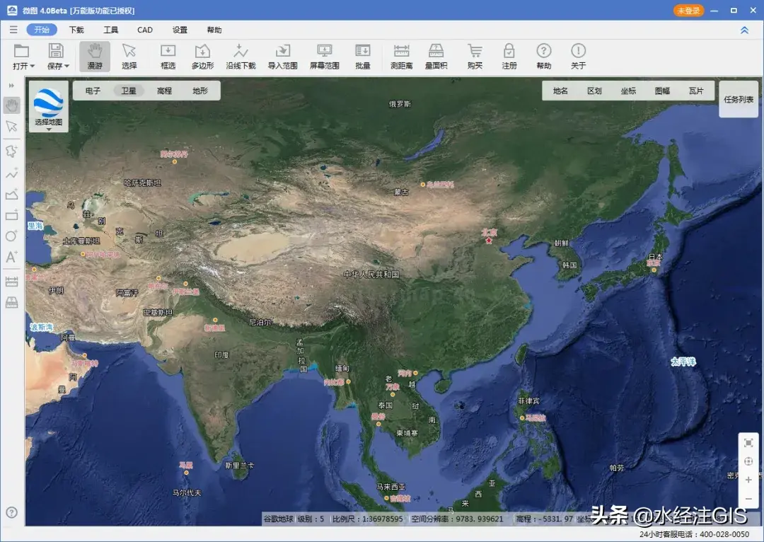 本教程所使用的数据是水经注微图中下载的高程DEM数据,除了高程数据,常见的GIS数据均可以下载。