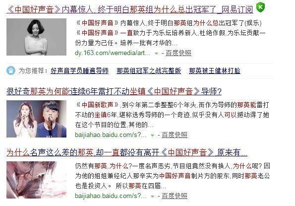虽然那英因为好声音招了不少骂,但是那英也因为好声音而一直保持了持久的曝光度。这背后给那英带来的利益有多丰厚。成为好声音导师之前,那英就已经没什么曝光率了,但是从好声音开始,尽管网友对那英不满很多,甚至和网友互怼严重还伤心的关过微博。