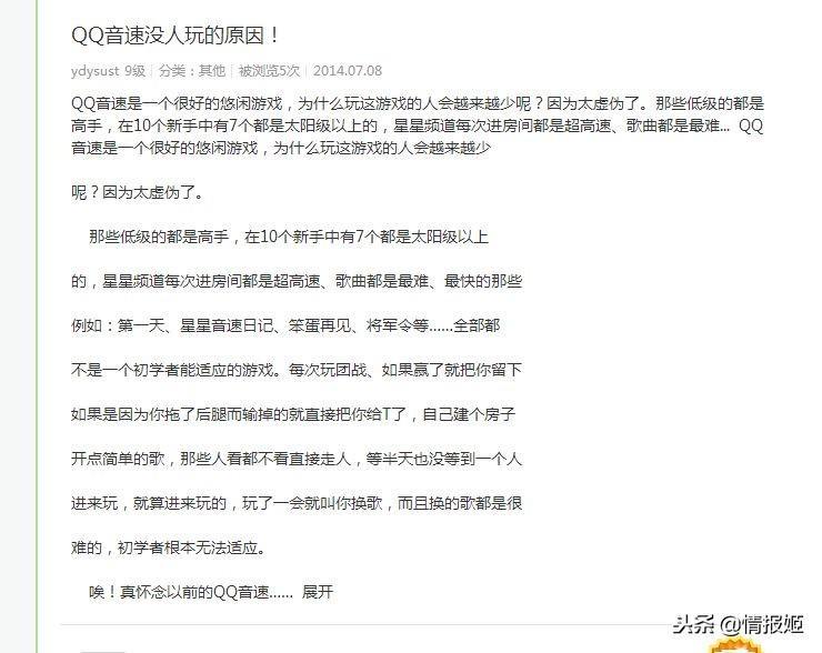 一些玩家分析qq音速衰落的缘由之一。