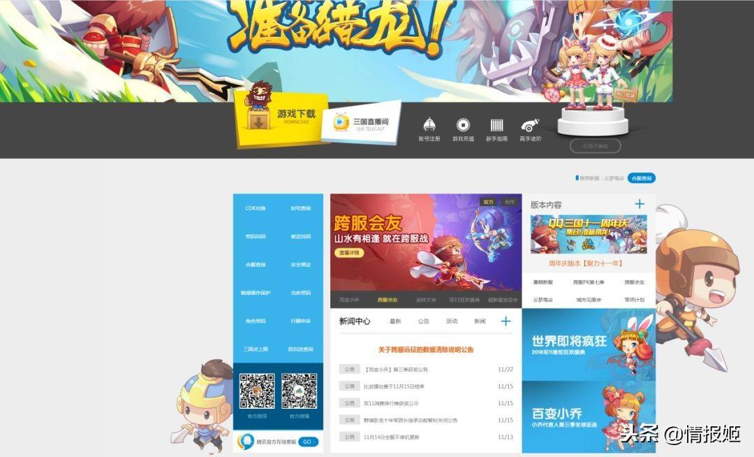 虽然官网首页看起来有点冷清, qq三国仍在努力的不断更新版本,推新活动——不断的合服与开新服让这款游戏看起来“没那么容易死去”