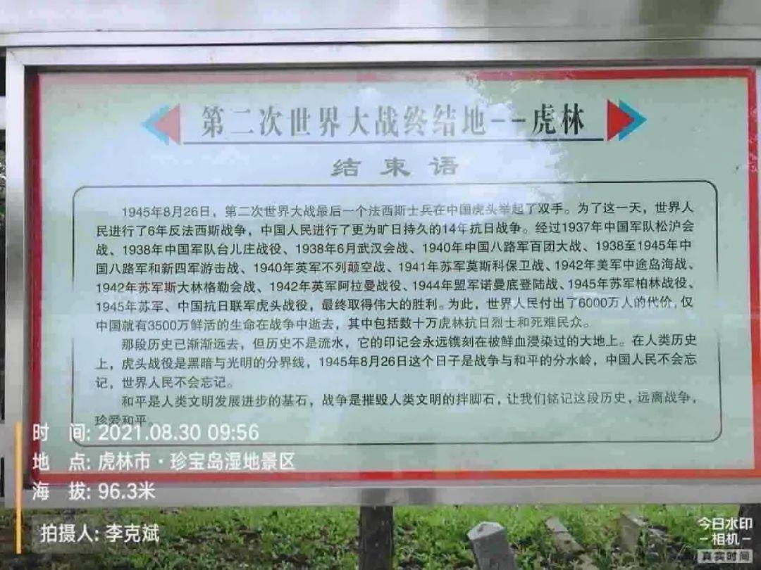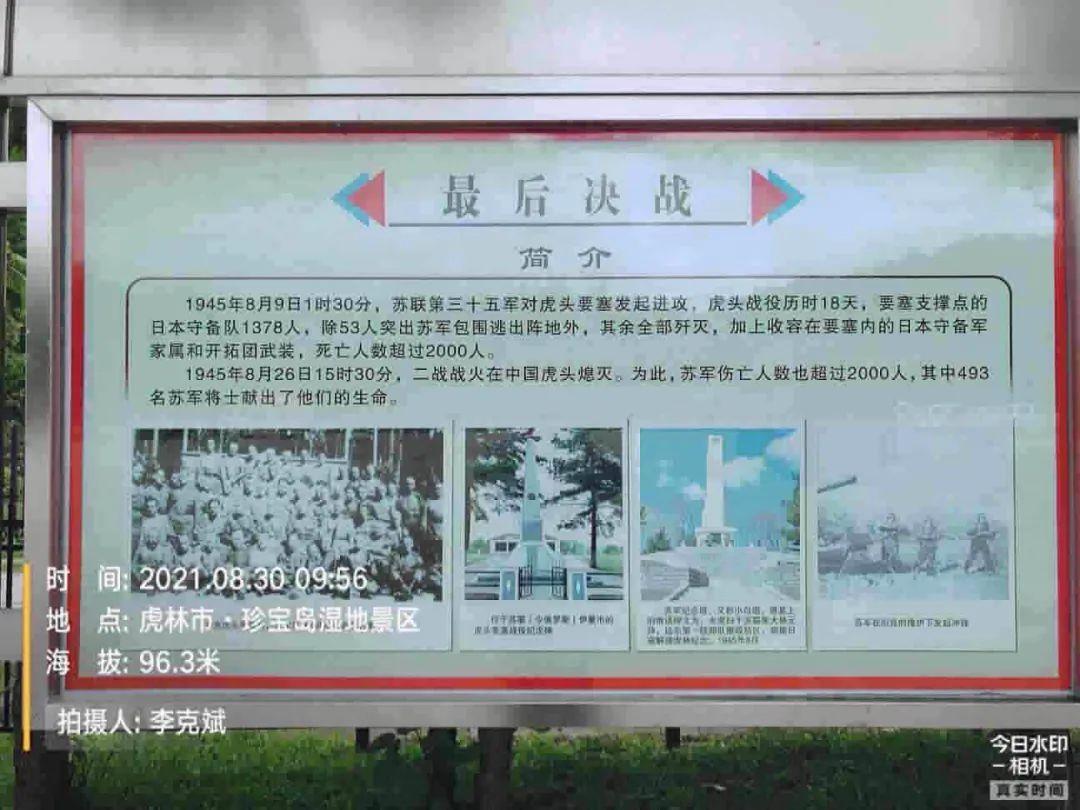 珍宝岛到虎林市虎头镇90公里,全程水泥路面,路况可以但舒适性稍差,中间游玩虎林湿地耽误了一点时间,到达虎头要塞时已经下午5点多,停车在虎头要塞遗址博物馆停车场并准备过夜。这里曾经是二战战场,还好有一个辽宁牌照的车同时过夜,否则一个车还真有点怕。虎头镇曾经是虎林县政府驻地,是乌苏里江沿岸的一座小镇,风景很美,名声很大,只不过它的名声靠的不是风景,而是抗战时日本人在这里修的虎头要塞以及作为第二次世界大战终结地而出名。1933年,日本关东军侵占虎头后,为了防备苏联,即在这里驻扎重兵,并着手秘密修建地下要塞,一期有朝一日成为进攻苏联的桥头堡。要塞建设费时6年,于1939年建成。虎头要塞大大小小共有十余处,由猛虎山、虎北山、虎东山、虎西山、虎啸山五个阵地组成。其中猛虎山是主要阵地,周围是沼泽地带,形成难以通行的天然屏障。虎头要塞建成后,形成了巨大的地下隧道网络。隧道宽、高约3~4米,用3米厚的钢筋水泥浇铸。地下工事包括指挥所、通讯室、士兵休息室、伙房、浴池、粮库、弹药库、发电所等,有竖井直通山顶观测所和出入口、通风口、枪眼、炮眼、反击口等几十条横竖通道,像蜘蛛网一样在山底下向各处延伸。工事上面自然植被茂密,不见一点儿人工痕迹。要塞外围筑有野战工事和飞机场。正是由于虎头要塞的分布范围广、工事规模大、军事设施全、防御坚固、攻击力强,被日本关东军称为东方“马奇诺防线”。1945年8月15日,日本天皇宣布无条件投降,虎头要塞的日本官兵都不相信这是真的。8月18日, 苏军向日军守备队发出最后通牒, 要日军按照天皇的诏书无条件投降,塞内的日军拒绝投降,于是第二天苏军开始全面进攻,战斗一直持续到8月26日才结束,要塞内仅剩的53个官兵被俘,其余全部被歼灭,至此,距离日本天皇宣布无条件投降,足足向后拖延了11天。这一战也成为了二战最后一站。因此,虎头要塞让后来的国内外学者称为“第二次世界大战的终结地”。为了前面介绍虎头要塞并让后人能铭记这段历史,虎林市在此建立了“侵华日军虎头要塞遗址博物馆”,博物馆用大量的图片和实物介绍了日伪统治下的虎头镇、虎头要塞概况、修建要塞的劳工的血泪史、虎头要塞之战等,博物馆下方有要塞地下工事遗址。