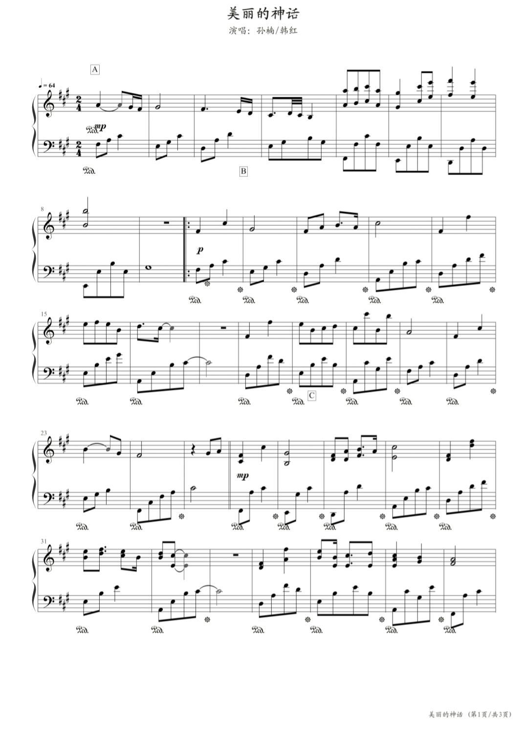 美丽的神话,钢琴谱,成龙,曲谱分享