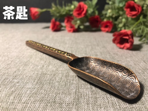 它又称为茶勺,用来盛茶的,不用手抓茶叶到茶壶里头,而是用茶勺来铲。