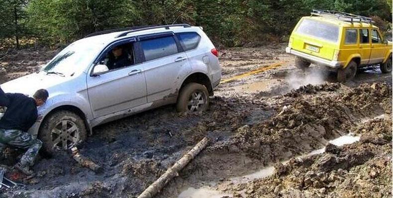 可以发现在遇到弯弯曲曲的山路、坑坑洼洼的土路、泥泞的山间小道、冰雪覆盖的路面时,四驱的SUV动力很强大,依旧彪悍到畅通无阻(如果此时旁边是辆深陷其境的二驱车,还能搭把手拉人家一程~~);而在遇到同样如此令人奔溃的极限路段时,二驱车要么车轮打滑,要么索性罢工了,只能靠智慧和群众的力量摆脱泥塘的困境了。