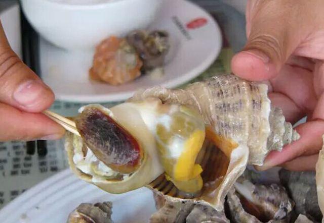 海螺的底部有一个黄色的部分,很多人认为这是“屎”。事实上,这是海螺的内部器官,包括一些沙子和肠道等等说白了就是一些排泄物。这个部位有很多杂质,吃了会导致胆固醇过高,对我们的健康是很不利的,所以一定去剔除。