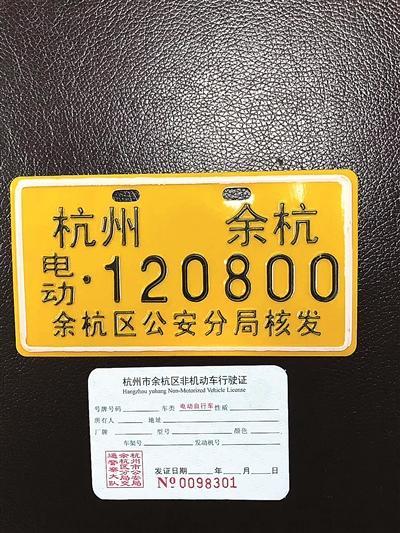 图一:这是正规“国标车”的合法号牌,由余杭车管所等办证点官方注册发牌。