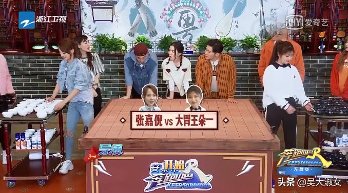 在游戏PK环节中,跑男嘉宾张嘉倪选择了大胃王朵一作为PK对象,当朵一说出自己是大胃王,并且曾经成功挑战过50斤小龙虾,以及用3分53秒挑战了10桶火鸡面的优秀战绩时,惊呆了现场众人,大家都不敢相信眼前娇小的朵一竟然是个名副其实的大胃王。