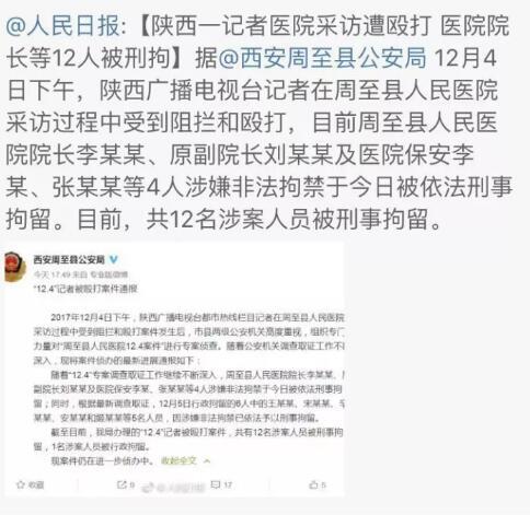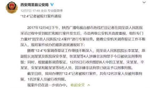 12月7日,周至县公安局发布了“12.4”记者被殴打案件通报。