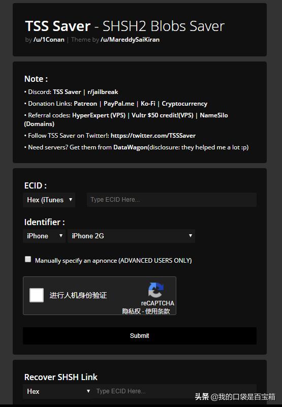 8,TSS Saver- SHSH2 的备份网站,只有备份了SHSH2,你的设备才能够降级。