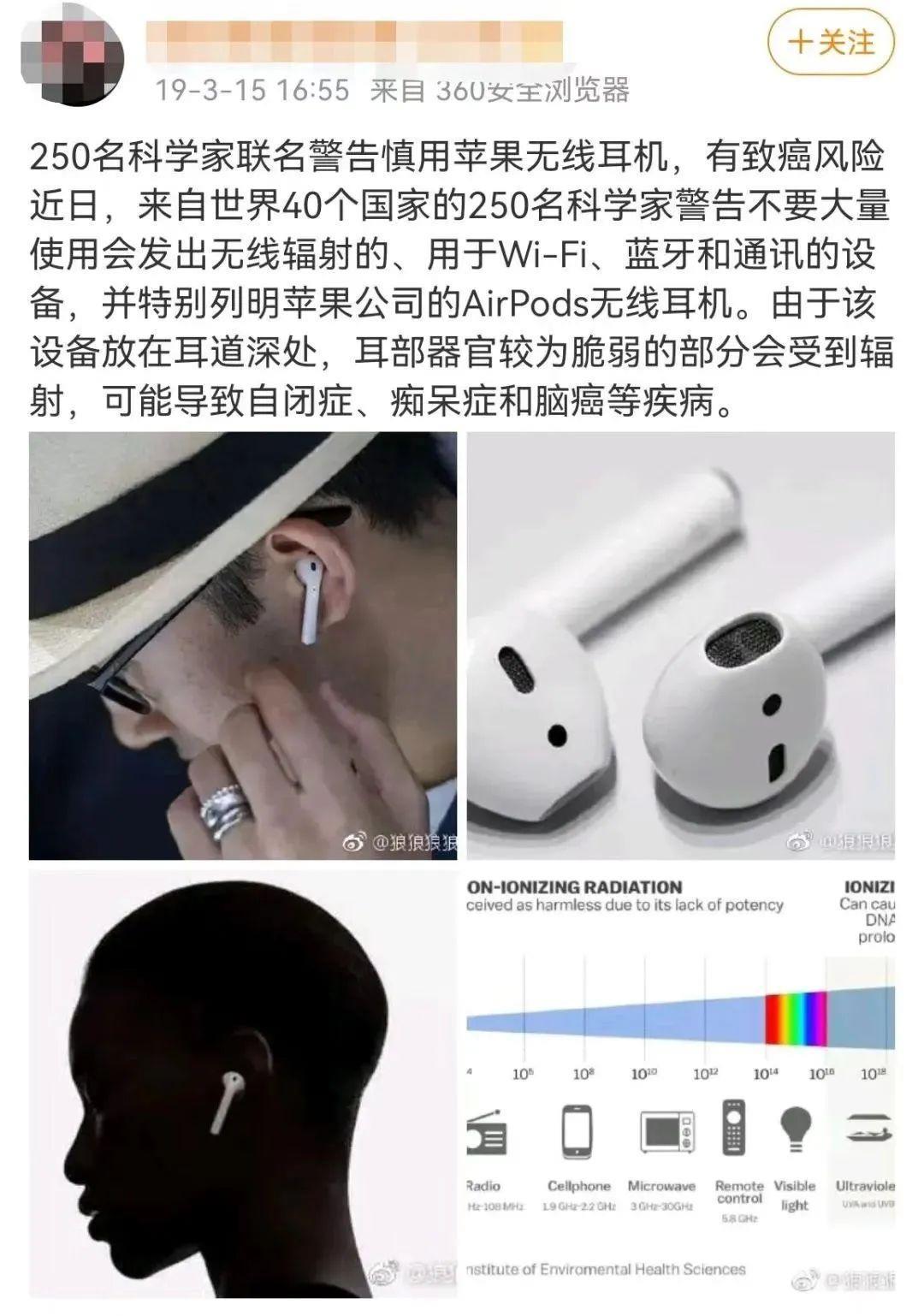 或许这也是现在AirPods辐射致癌这种无稽之谈的谣言还能盛传的原因吧,科普再多,也总有人不相信。